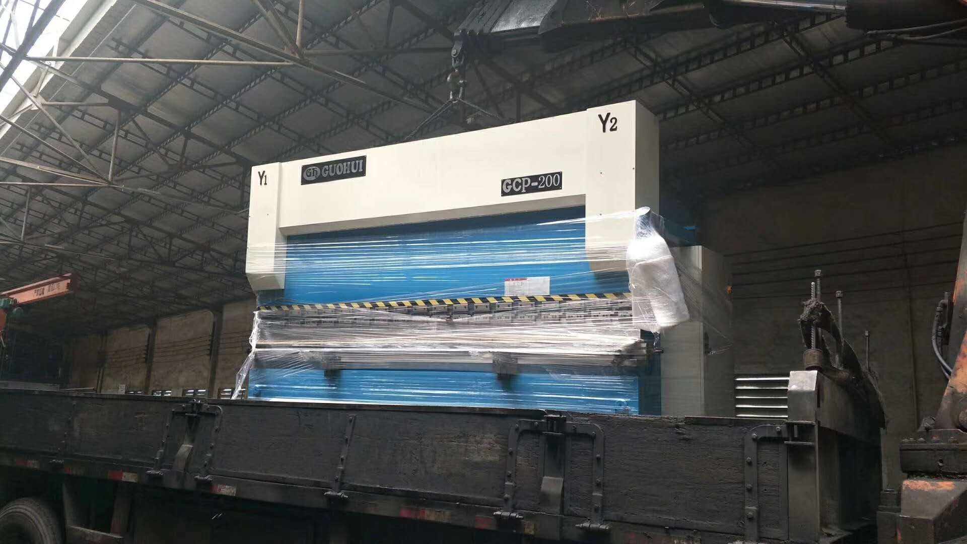 風(fēng)雨再大,雷鳴電閃,也阻擋不了為客戶送去賺錢機(jī)---國(guó)輝電液伺服折彎?rùn)C(jī)GCP200T-4000
